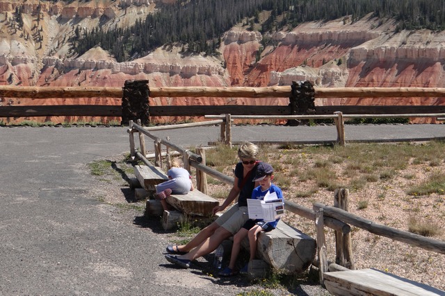 Es sieht ein bisschen aus wie Bryce Canyon, aber doch so anders. Jetzt wollen wir uns mal dran machen, etwas für den Junior Ranger Badge zu tun. Die schwierigste Aufgabe ist es, einen Hoodo abzuzeichnen, aber auch die anderen Aufgaben haben’s in sich. Ohne Englisch-Kenntnisse lassen sich viele Aufgaben leider auch nicht lösen, so assistieren wir den Kindern tatkräftig.