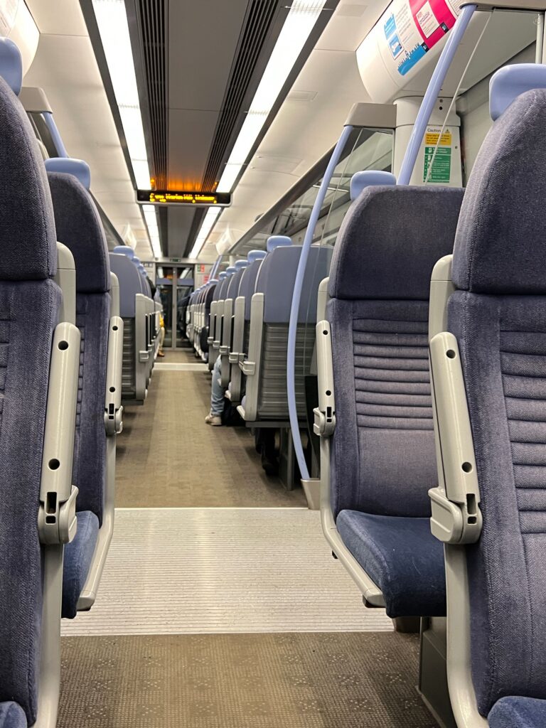 Wir besteigen einen Zug der Sourheastern, der fast leer ist. Später auf der Strecke steigen dann noch ein paar Passagiere zu, aber es bleibt insgesamt recht geräumig.