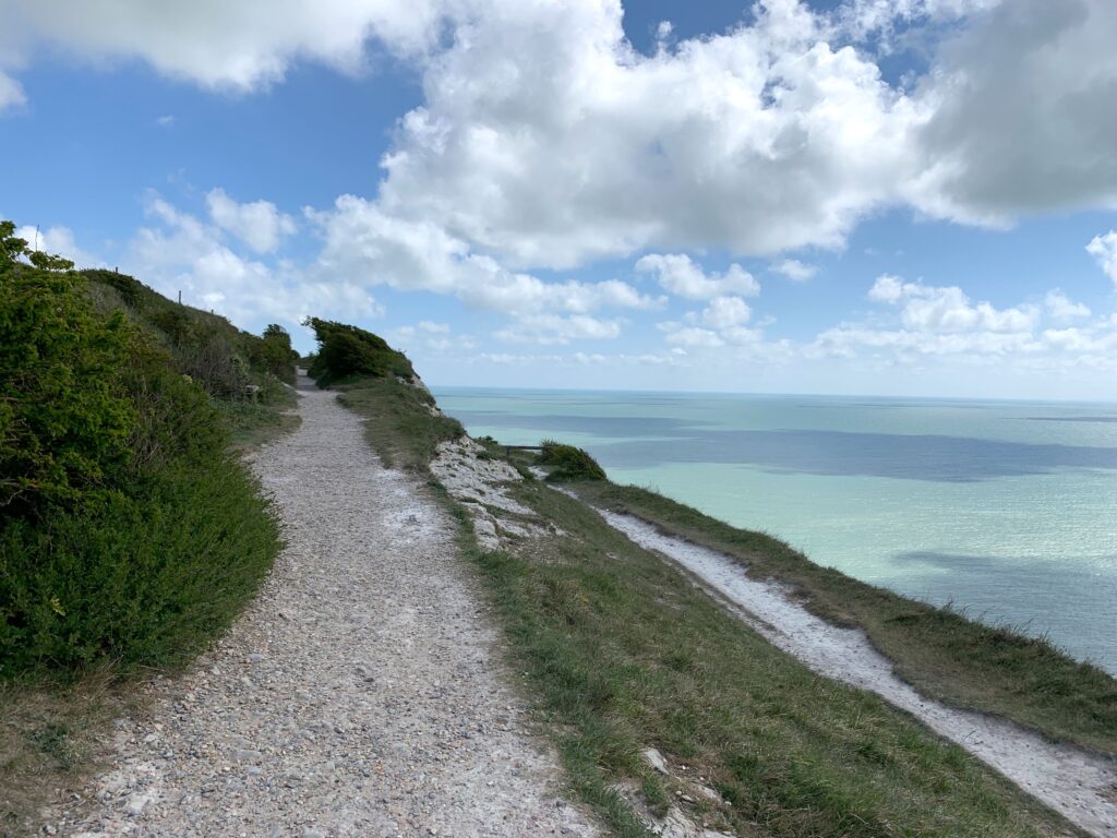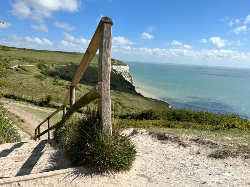 Die Fahrt dauert ca. 10 Minuten und kostet 6 Pfund. Wir geben dem Fahrer 10 Pfund, was dieser als Anlass sieht uns gleich noch etwas Tipps zu geben und die Gegend zu erklären. So kann man offensichtlich von hier an klaren Tagen sowohl die Südspitze Englands, als auch die Küste Frankreichs sehen. Das ist heute sogar der Fall. Es ist sonnig, klar und die Luft nicht diesig oder trüb. Fotografieren kann man diese Küsten mit dem Mobiltelefon allerdings nicht, dafür sind sie zu weit entfernt…