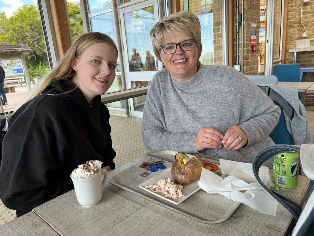 Bevor wir die Wanderung zum Hafen antreten, stärken wir uns mit Baked Potatoes, heisser Schokolade und Kuchen.