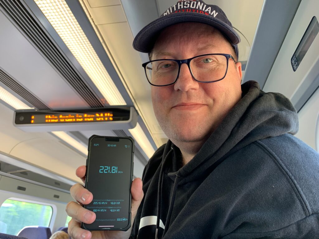 Wir sind mit über 220 km/h unterwegs! Das Ding in dem wir sitzen ist ein Hochgeschwindigkeitszug. Das war uns auf der Hinfahrt gar nicht aufgefallen…