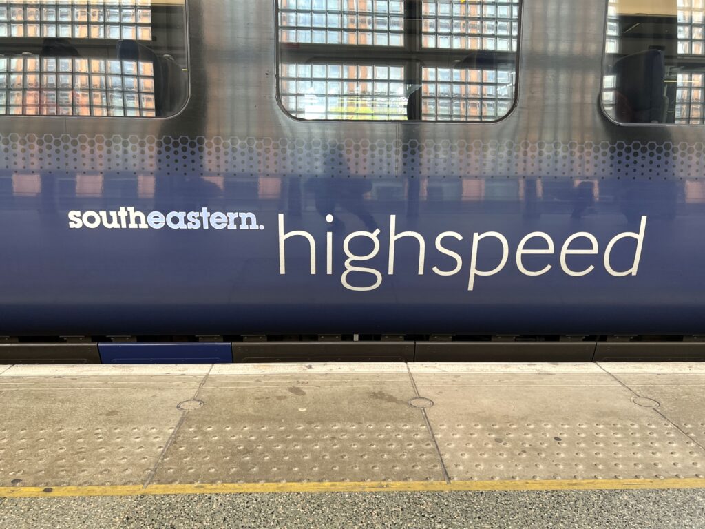Tatsächlich fällt mir erst beim Aussteigen am Bahnhof St. Pancras auf, dass auf dem Zug prominent „southeastern highspeed“ aufgemalt ist.