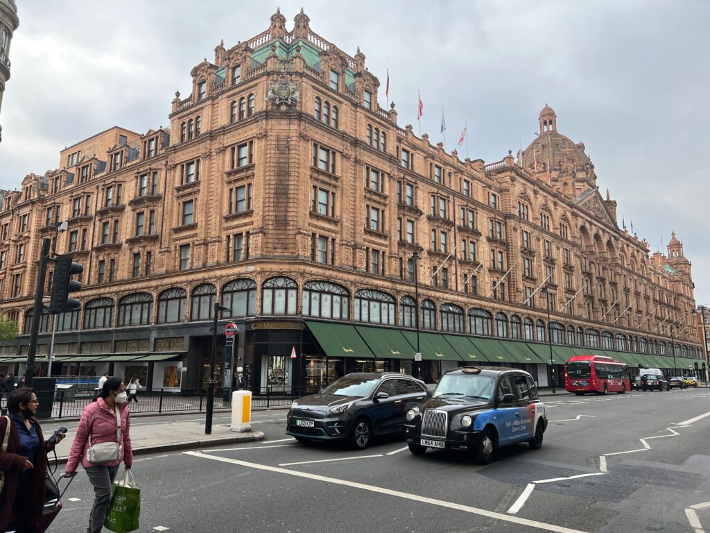 Nachdem wir Busse neu zu unserem Repertoire an Fortbewegungsmitteln zählen, fahren wir ab sofort kreuz und quer durch London. Erst mal geht’s zum Harrods.