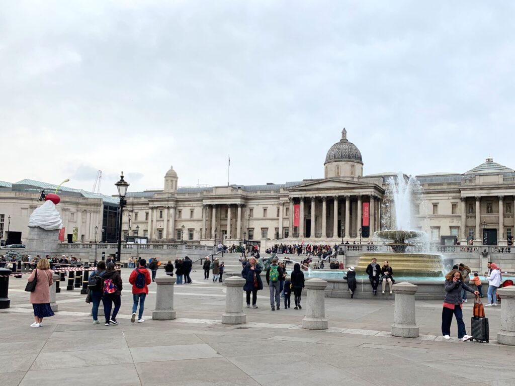 Abends fahren wir zum Trafalgar Square. Der britische Vizeadmiral Horatio Nelson hat eine ziemlich wichtige Seeschlacht gegen die Französisch-Spanische Armada gewonnen, weshalb man diesen ganzen Platz mal kurz nach dem Austragungsort der Schlacht benannt hat.